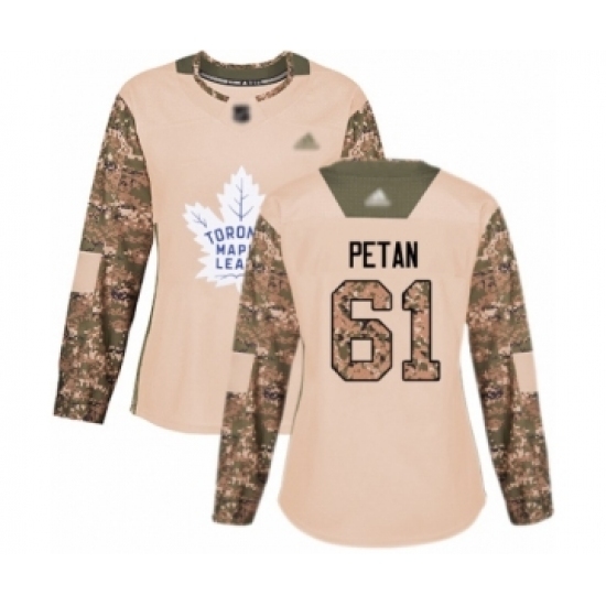 • Women's Toronto Maple Leafs #61 Nic Petan Authentic Camo Veterans Day Practice Hockey Jersey