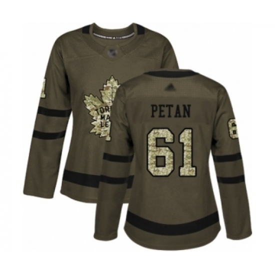 • Women's Toronto Maple Leafs #61 Nic Petan Authentic Green Salute to Service Hockey Jersey