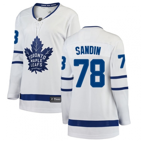 Women's Toronto Maple Leafs #78 Rasmus Sandin Authentic White Away Fanatics Branded Breakaway NHL Jersey