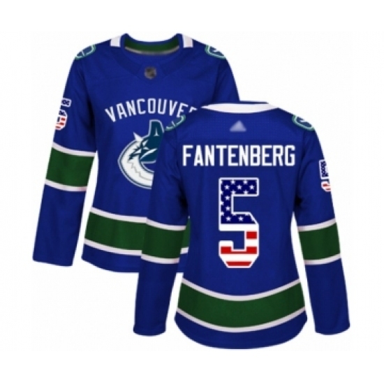 Women's Vancouver Canucks #5 Oscar Fantenberg Authentic Blue USA Flag Fashion Hockey Jersey