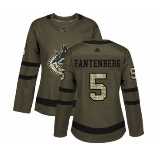 • Women's Vancouver Canucks #5 Oscar Fantenberg Authentic Green Salute to Service Hockey Jersey