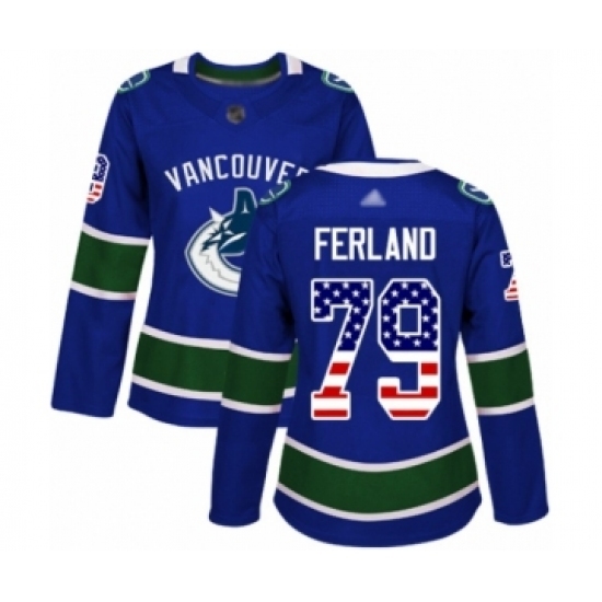 Women's Vancouver Canucks #79 Michael Ferland Authentic Blue USA Flag Fashion Hockey Jersey