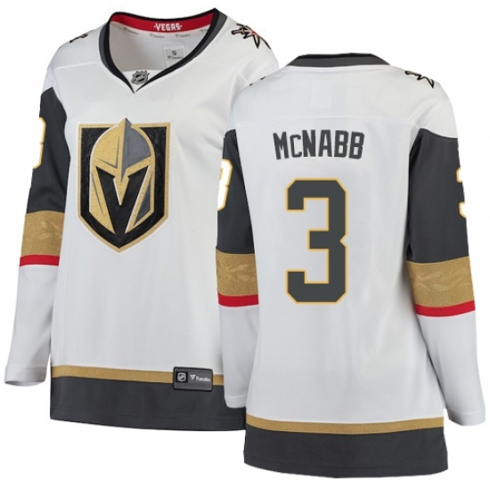 • Women's Vegas Golden Knights #3 Brayden McNabb Authentic White Away Fanatics Branded Breakaway NHL Jersey