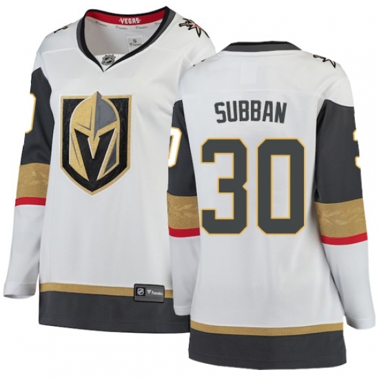 • Women's Vegas Golden Knights #30 Malcolm Subban Authentic White Away Fanatics Branded Breakaway NHL Jersey
