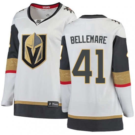 • Women's Vegas Golden Knights #41 Pierre-Edouard Bellemare Authentic White Away Fanatics Branded Breakaway NHL Jersey