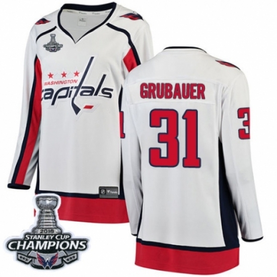 • Women's Washington Capitals #31 Philipp Grubauer Fanatics Branded White Away Breakaway 2018 Stanley Cup Final Champions NHL Jersey