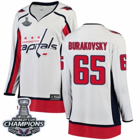 • Women's Washington Capitals #65 Andre Burakovsky Fanatics Branded White Away Breakaway 2018 Stanley Cup Final Champions NHL Jersey