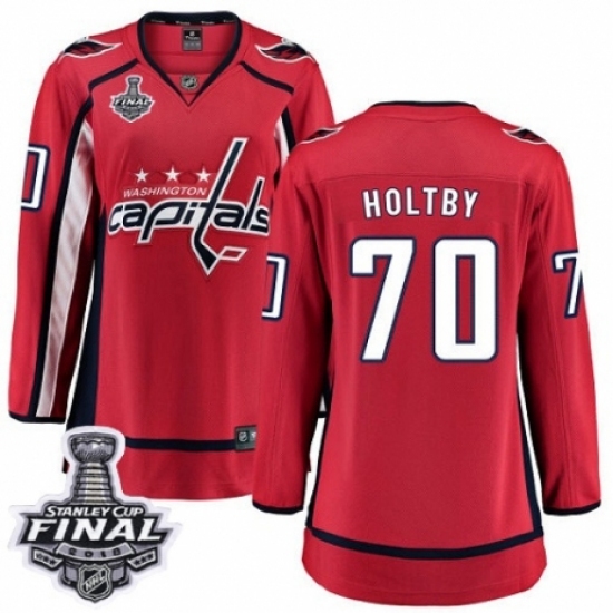 • Women's Washington Capitals #70 Braden Holtby Fanatics Branded Red Home Breakaway 2018 Stanley Cup Final NHL Jersey