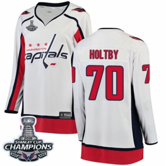 • Women's Washington Capitals #70 Braden Holtby Fanatics Branded White Away Breakaway 2018 Stanley Cup Final Champions NHL Jersey