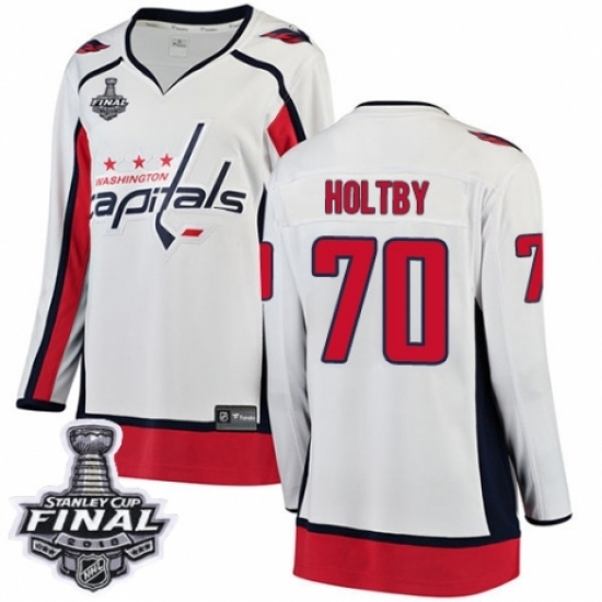 • Women's Washington Capitals #70 Braden Holtby Fanatics Branded White Away Breakaway 2018 Stanley Cup Final NHL Jersey