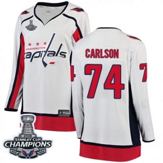 • Women's Washington Capitals #74 John Carlson Fanatics Branded White Away Breakaway 2018 Stanley Cup Final Champions NHL Jersey