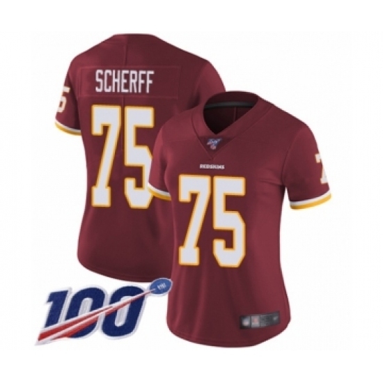 • Women's Washington Redskins #75 Brandon Scherff Burgundy Red Team Color Vapor Untouchable Limited Player 100th Season Football Jersey