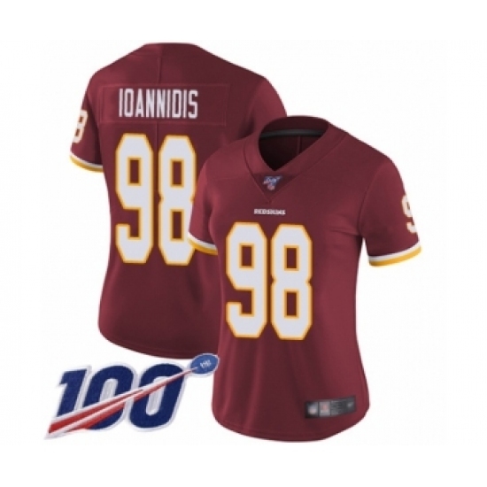 • Women's Washington Redskins #98 Matt Ioannidis Burgundy Red Team Color Vapor Untouchable Limited Player 100th Season Football Jersey