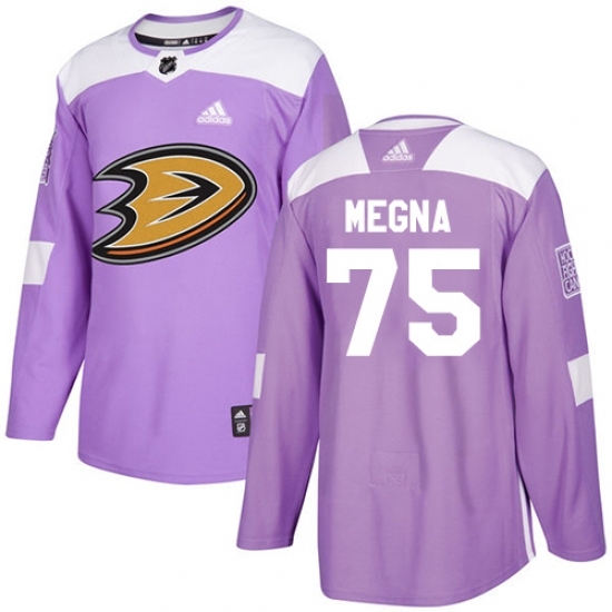 • Youth Adidas Anaheim Ducks #75 Jaycob Megna Authentic Purple Fights Cancer Practice NHL Jersey