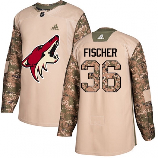 • Youth Adidas Arizona Coyotes #36 Christian Fischer Authentic Camo Veterans Day Practice NHL Jersey
