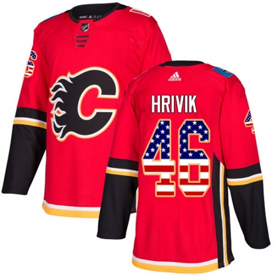 • Youth Adidas Calgary Flames #46 Marek Hrivik Authentic Red USA Flag Fashion NHL Jersey