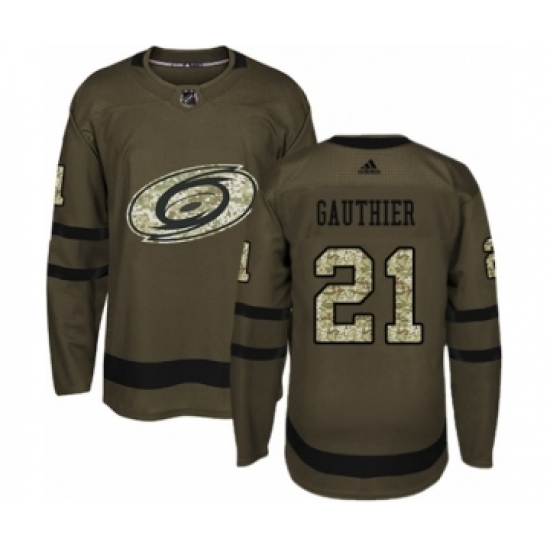 • Youth Adidas Carolina Hurricanes #21 Julien Gauthier Premier Green Salute to Service NHL Jersey