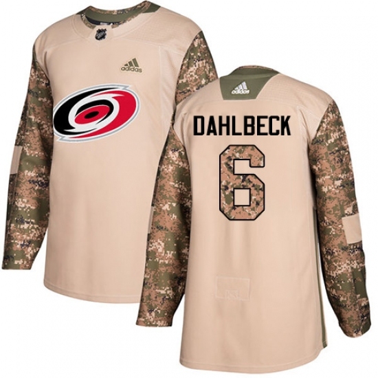 • Youth Adidas Carolina Hurricanes #6 Klas Dahlbeck Authentic Camo Veterans Day Practice NHL Jersey