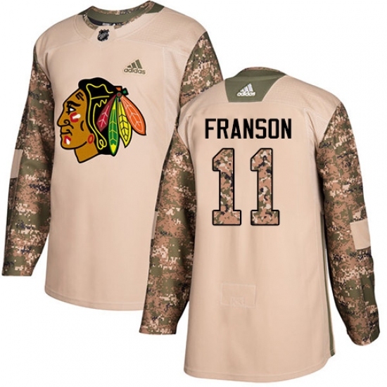 • Youth Adidas Chicago Blackhawks #11 Cody Franson Authentic Camo Veterans Day Practice NHL Jersey