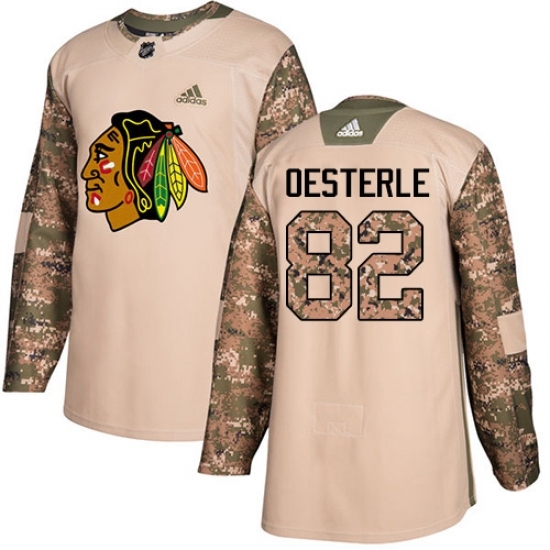 • Youth Adidas Chicago Blackhawks #82 Jordan Oesterle Authentic Camo Veterans Day Practice NHL Jersey