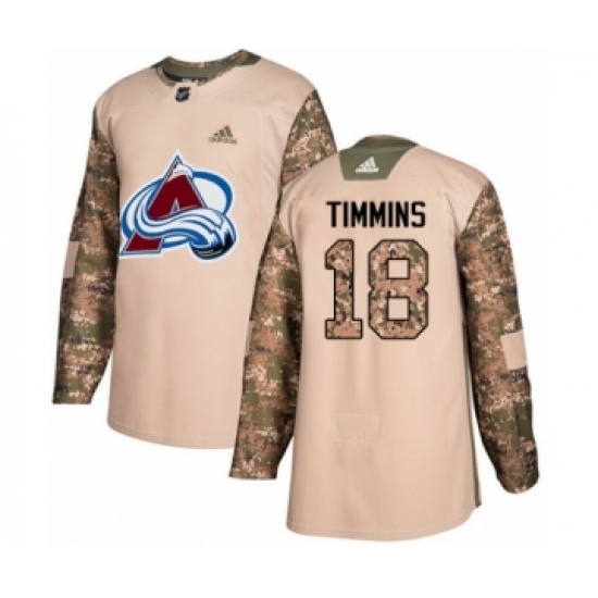 • Youth Adidas Colorado Avalanche #18 Conor Timmins Authentic Camo Veterans Day Practice NHL Jersey