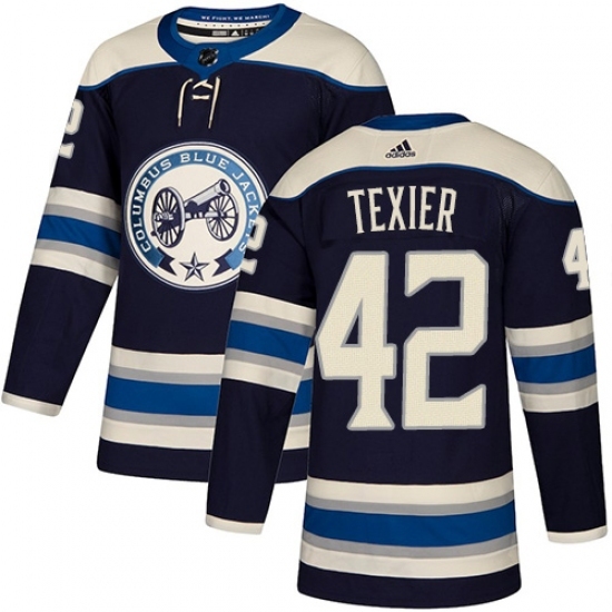 • Youth Adidas Columbus Blue Jackets #42 Alexandre Texier Authentic Navy Blue Alternate NHL Jersey