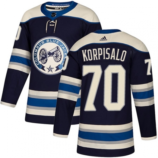 • Youth Adidas Columbus Blue Jackets #70 Joonas Korpisalo Authentic Navy Blue Alternate NHL Jersey
