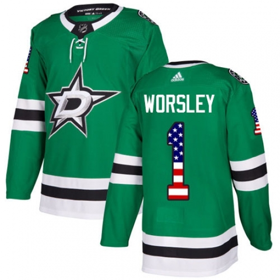 • Youth Adidas Dallas Stars #1 Gump Worsley Authentic Green USA Flag Fashion NHL Jersey