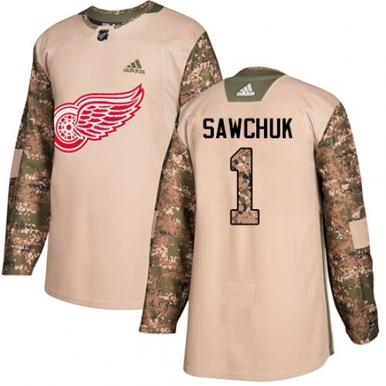 • Youth Adidas Detroit Red Wings #1 Terry Sawchuk Authentic Camo Veterans Day Practice NHL Jersey