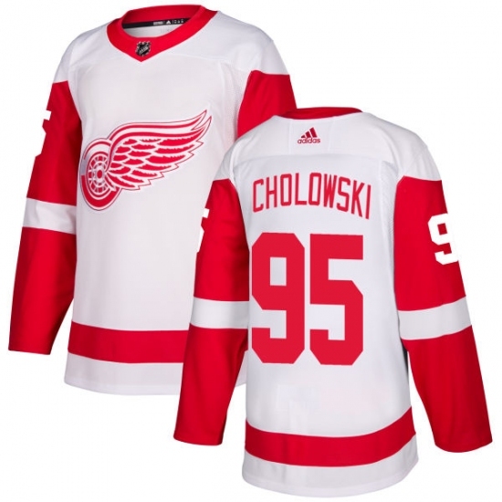 Youth Adidas Detroit Red Wings #95 Dennis Cholowski Authentic White Away NHL Jersey