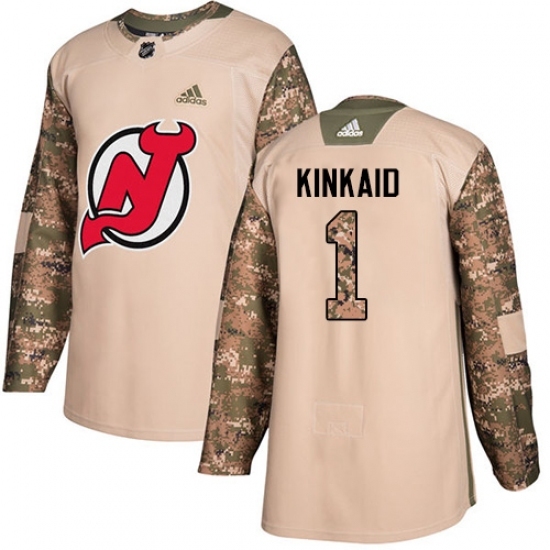 • Youth Adidas New Jersey Devils #1 Keith Kinkaid Authentic Camo Veterans Day Practice NHL Jersey
