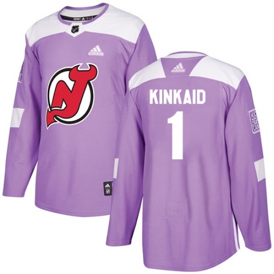 • Youth Adidas New Jersey Devils #1 Keith Kinkaid Authentic Purple Fights Cancer Practice NHL Jersey