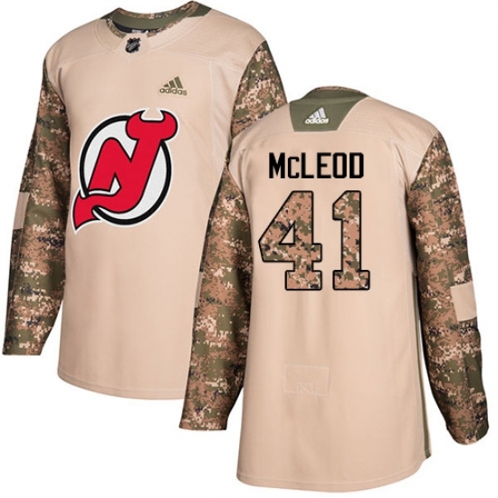 • Youth Adidas New Jersey Devils #41 Michael McLeod Authentic Camo Veterans Day Practice NHL Jersey