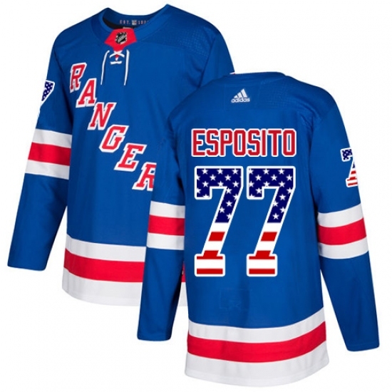 • Youth Adidas New York Rangers #77 Phil Esposito Authentic Royal Blue USA Flag Fashion NHL Jersey
