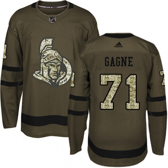 • Youth Adidas Ottawa Senators #71 Gabriel Gagne Authentic Green Salute to Service NHL Jersey