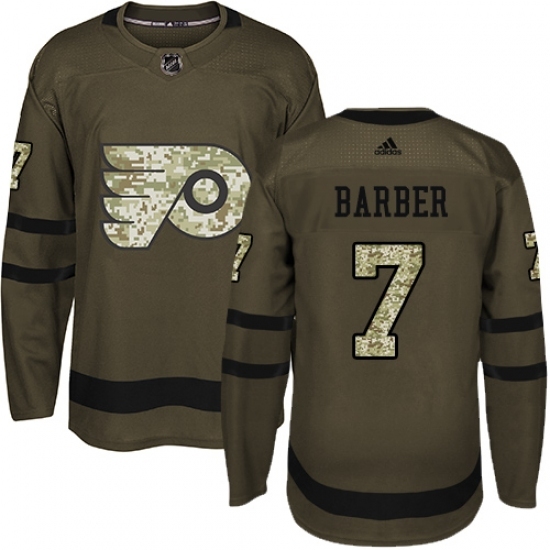 • Youth Adidas Philadelphia Flyers #7 Bill Barber Authentic Green Salute to Service NHL Jersey