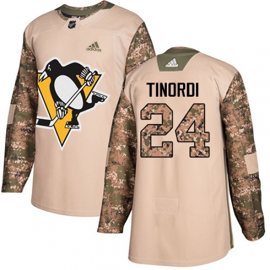 • Youth Adidas Pittsburgh Penguins #24 Jarred Tinordi Authentic Camo Veterans Day Practice NHL Jersey