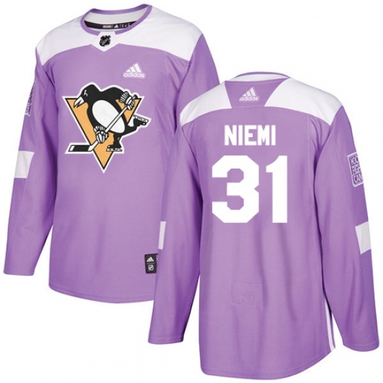Youth Adidas Pittsburgh Penguins #31 Antti Niemi Authentic Purple Fights Cancer Practice NHL Jersey