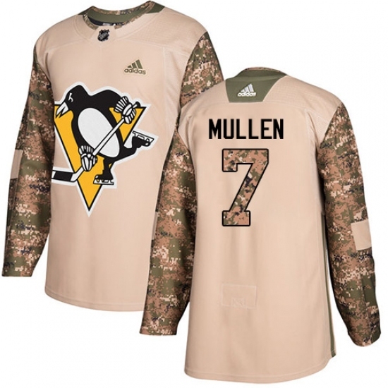 • Youth Adidas Pittsburgh Penguins #7 Joe Mullen Authentic Camo Veterans Day Practice NHL Jersey