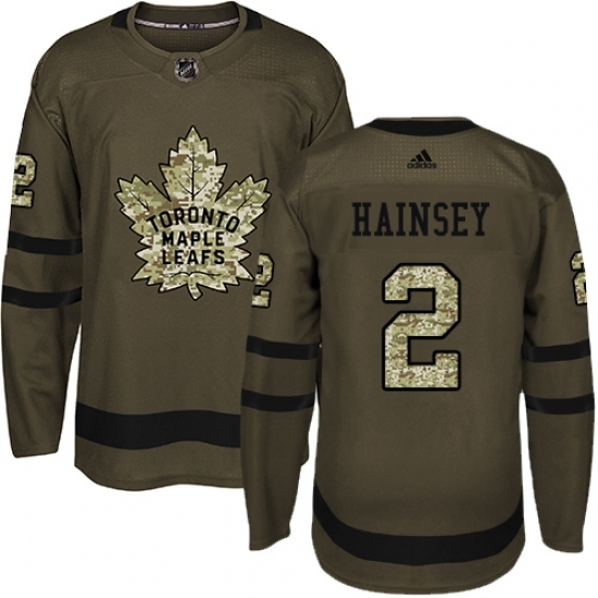 • Youth Adidas Toronto Maple Leafs #2 Ron Hainsey Authentic Green Salute to Service NHL Jersey