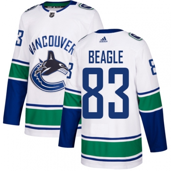 • Youth Adidas Vancouver Canucks #83 Jay Beagle Authentic White Away NHL Jersey