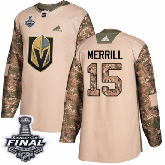 Youth Adidas Vegas Golden Knights #15 Jon Merrill Authentic Camo Veterans Day Practice 2018 Stanley Cup Final NHL Jersey