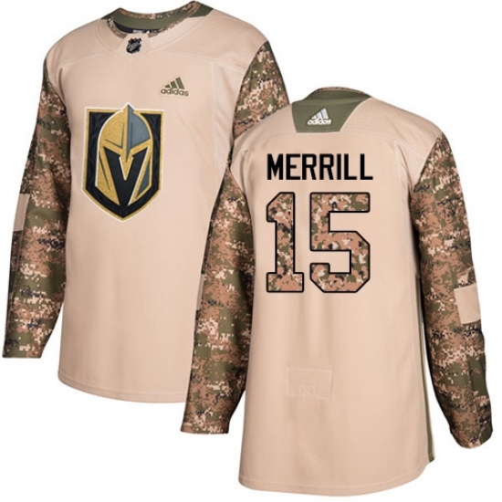 • Youth Adidas Vegas Golden Knights #15 Jon Merrill Authentic Camo Veterans Day Practice NHL Jersey