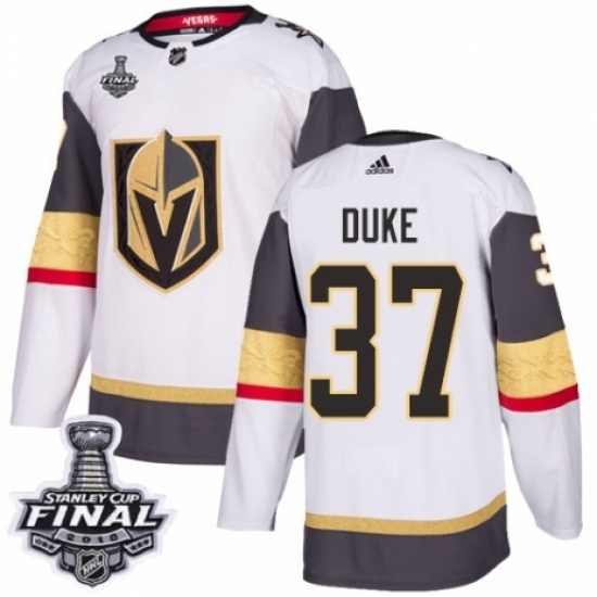 • Youth Adidas Vegas Golden Knights #37 Reid Duke Authentic White Away 2018 Stanley Cup Final NHL Jersey