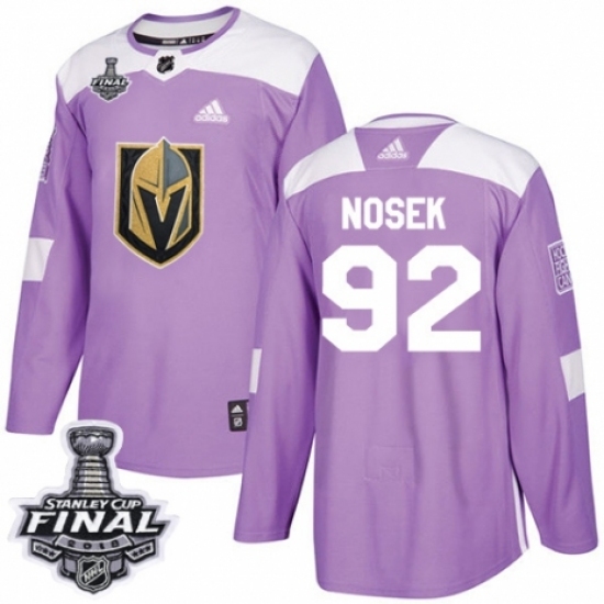 • Youth Adidas Vegas Golden Knights #92 Tomas Nosek Authentic Purple Fights Cancer Practice 2018 Stanley Cup Final NHL Jersey