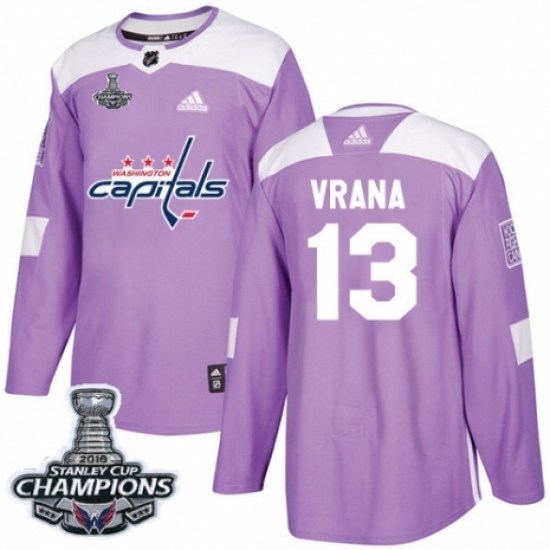 • Youth Adidas Washington Capitals #13 Jakub Vrana Authentic Purple Fights Cancer Practice 2018 Stanley Cup Final Champions NHL Jersey