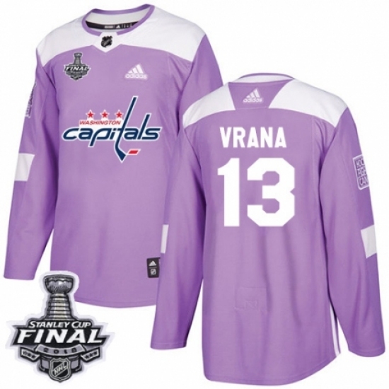 • Youth Adidas Washington Capitals #13 Jakub Vrana Authentic Purple Fights Cancer Practice 2018 Stanley Cup Final NHL Jersey