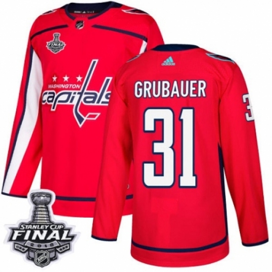 • Youth Adidas Washington Capitals #31 Philipp Grubauer Authentic Red Home 2018 Stanley Cup Final NHL Jersey