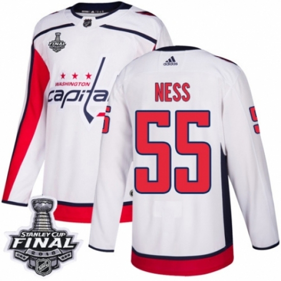 • Youth Adidas Washington Capitals #55 Aaron Ness Authentic White Away 2018 Stanley Cup Final NHL Jersey