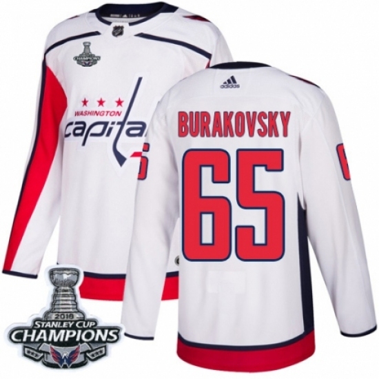• Youth Adidas Washington Capitals #65 Andre Burakovsky Authentic White Away 2018 Stanley Cup Final Champions NHL Jersey